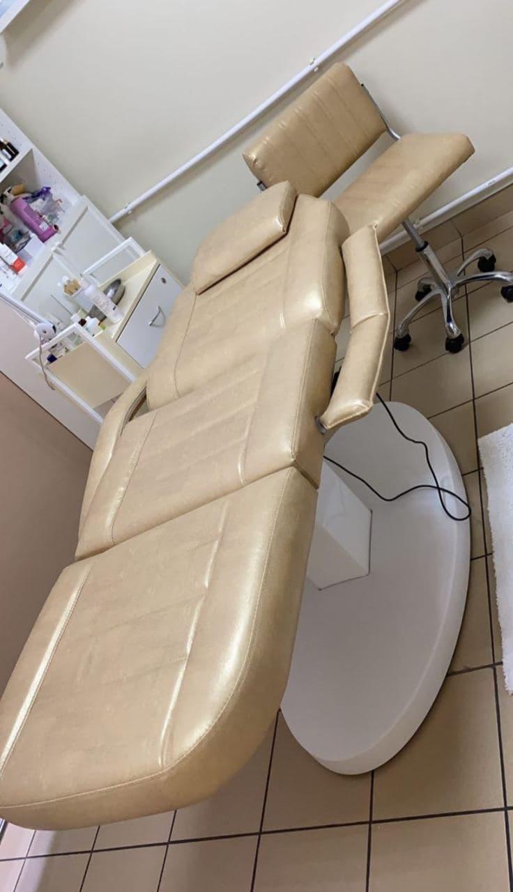 Косметологическое кресло Элегия и стульчик мастера собственного производства в индивидуальном цвете под заказ.