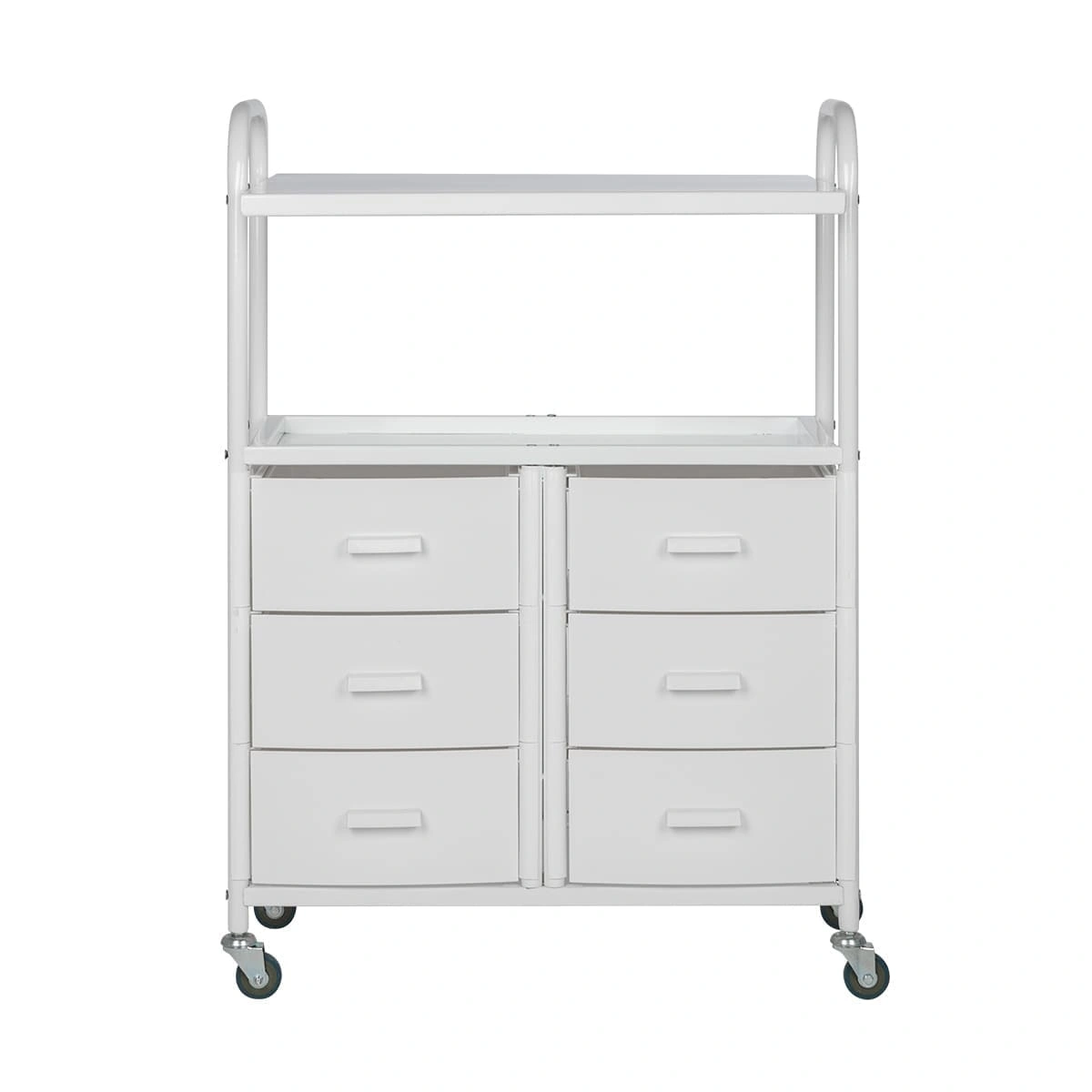 Для инструментов, аксессуаров и расходных материалов достаточно места в шести выдвижных ящиках. Полки можно использовать как для необходимых приспособлений, так и для установки небольших аппаратов. Несомненным плюсом косметологического оборудования являются встроенные маневренные колесики. Мастер без особых усилий может перемещать косметологическую тележку по рабочей зоне.