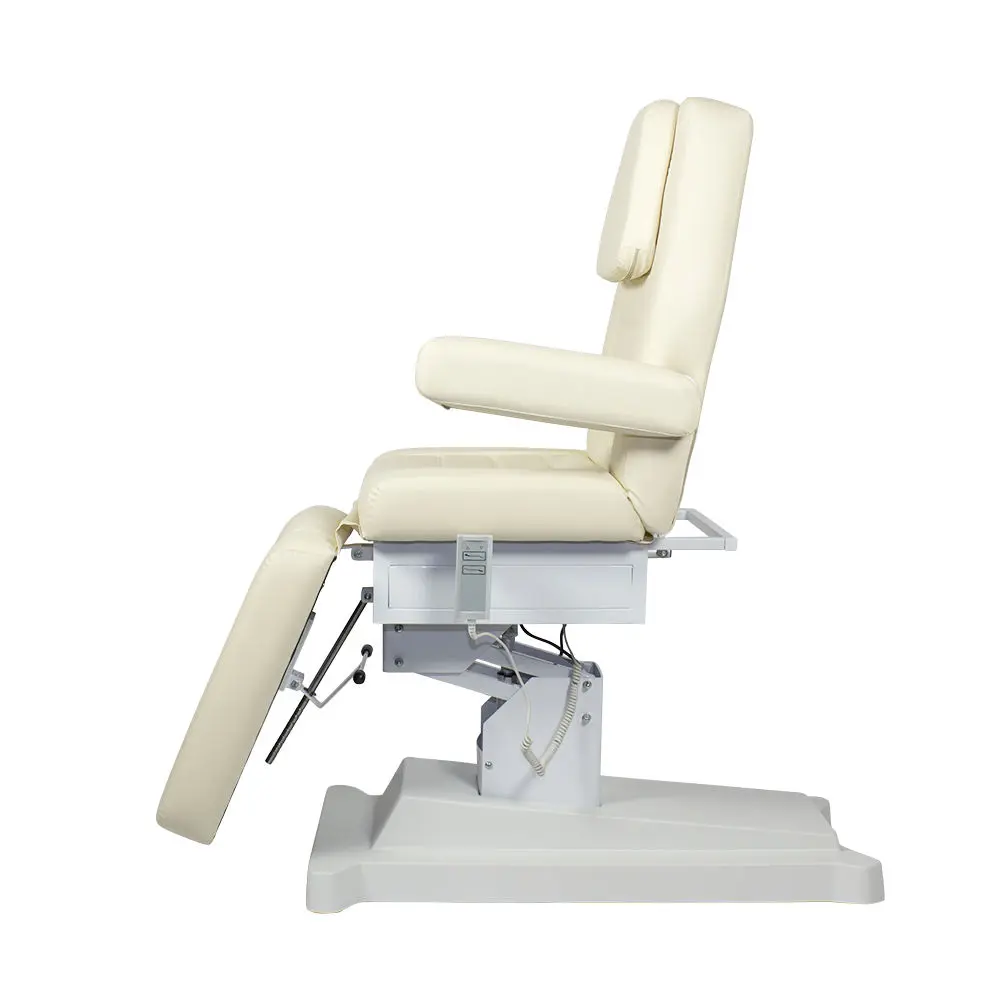 Профессиональное косметологическое кресло Альфа-10, 2 мотора от производителя МЭДИСОН имеет эргономичный дизайн и хороший функционал. Кресло состоит из тех секций: сиденье, высокая спинка с вырезом для лица и съемной подушкой, мягкий элемент для ног. Также данная модель оснащена широкими съемными подлокотниками. Для обивки мягких элементов наша компания применяет качественную износоустойчивую экокожу и плотный поролон (больше 100 цветов на выбор). Купить косметологическое кресло Альфа-10, 2 мотора можно для проведения как косметологических, так и массажных процедур.