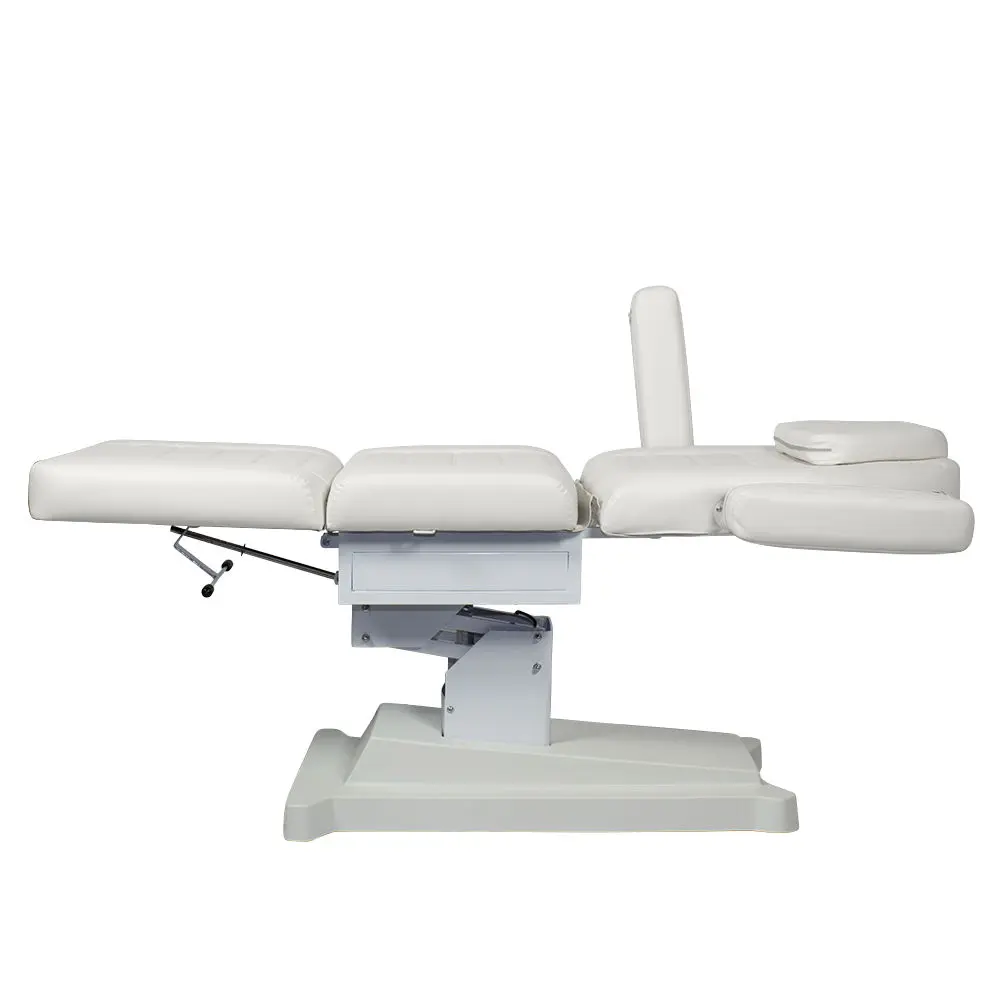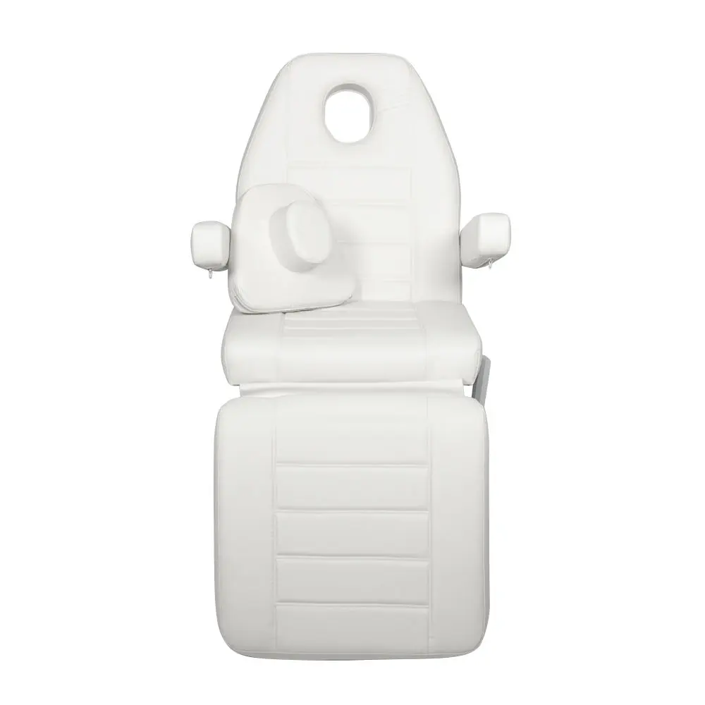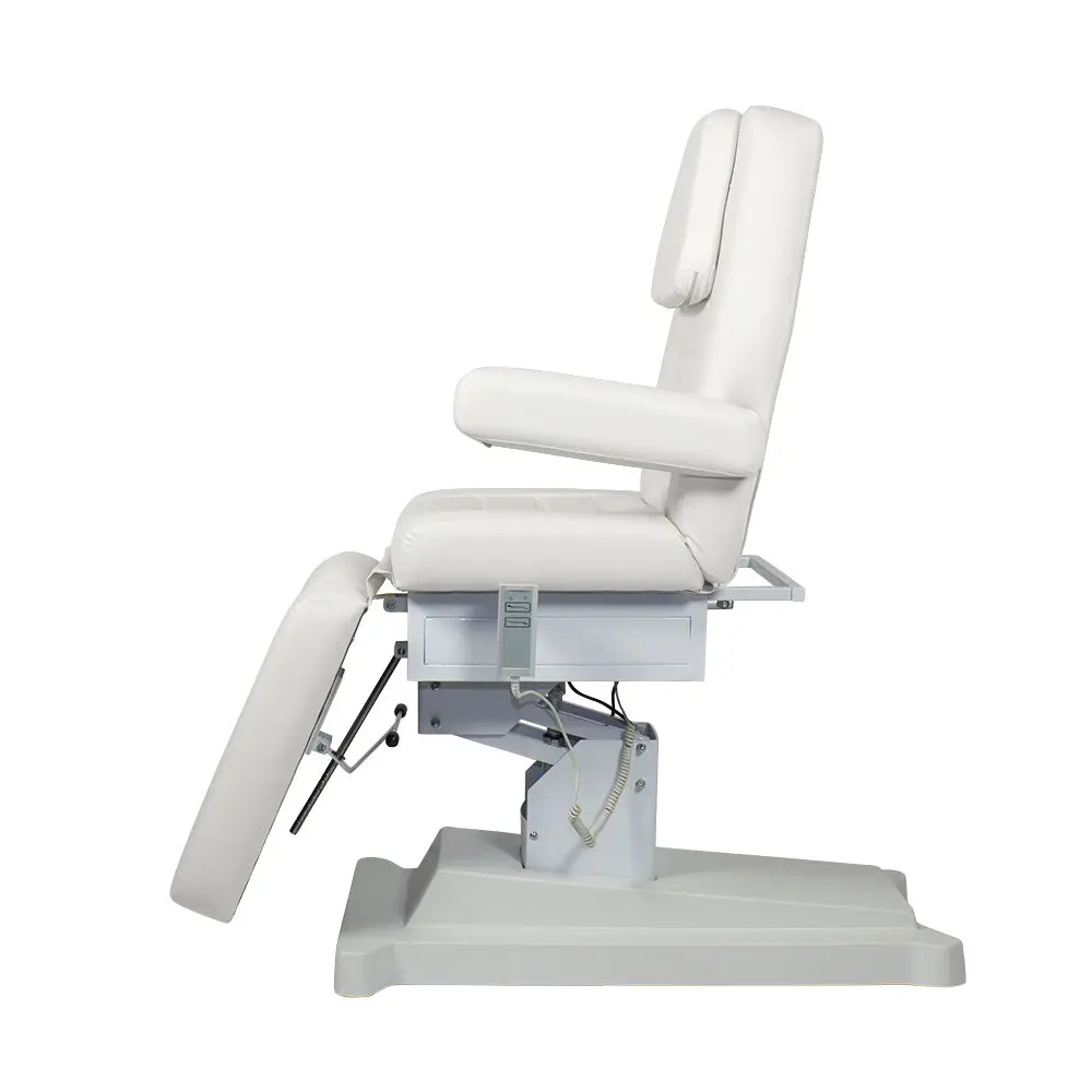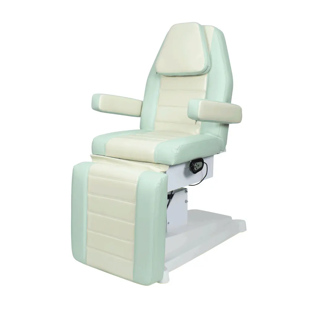 Профессиональное косметологическое кресло Альфа-10, 2 мотора от производителя МЭДИСОН имеет эргономичный дизайн и хороший функционал. Кресло состоит из тех секций: сиденье, высокая спинка с вырезом для лица и съемной подушкой, мягкий элемент для ног. Также данная модель оснащена широкими съемными подлокотниками. Для обивки мягких элементов наша компания применяет качественную износоустойчивую экокожу и плотный поролон (больше 100 цветов на выбор). Купить косметологическое кресло Альфа-10, 2 мотора можно для проведения как косметологических, так и массажных процедур.