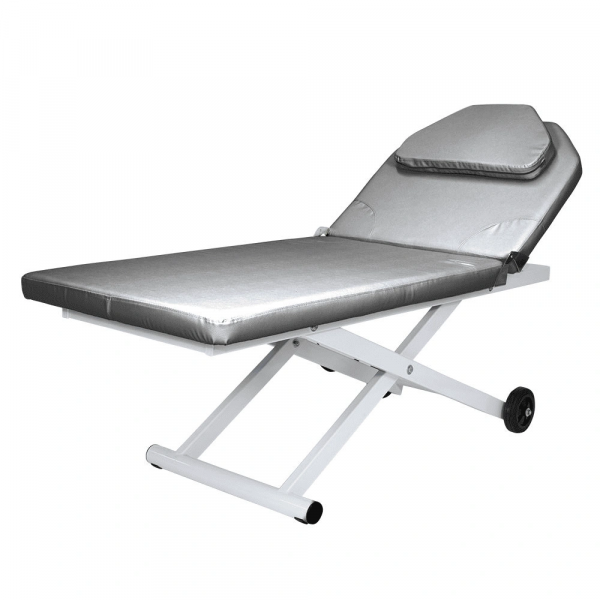 Профессиональная косметологическая кушетка МД-3329 Серебро позволит массажисту выполнять различные виды массажа с комфортом для клиентов. Она произведена из качественных материалов с учетом современных требований к массажному оснащению. Модель МД-3329 имеет прочный металлический каркас, который с одной стороны установлен на подпятниках, а с другой – на колесах. Такая конструкция обеспечивает устойчивость кушетки, а также позволяет легко перемещать и поворачивать ее при необходимости. Кушетка комплектуется электроприводом с одним мотором, при помощи которого мастер сможет без дополнительных усилий регулировать высоту, не прерывая рабочий процесс.