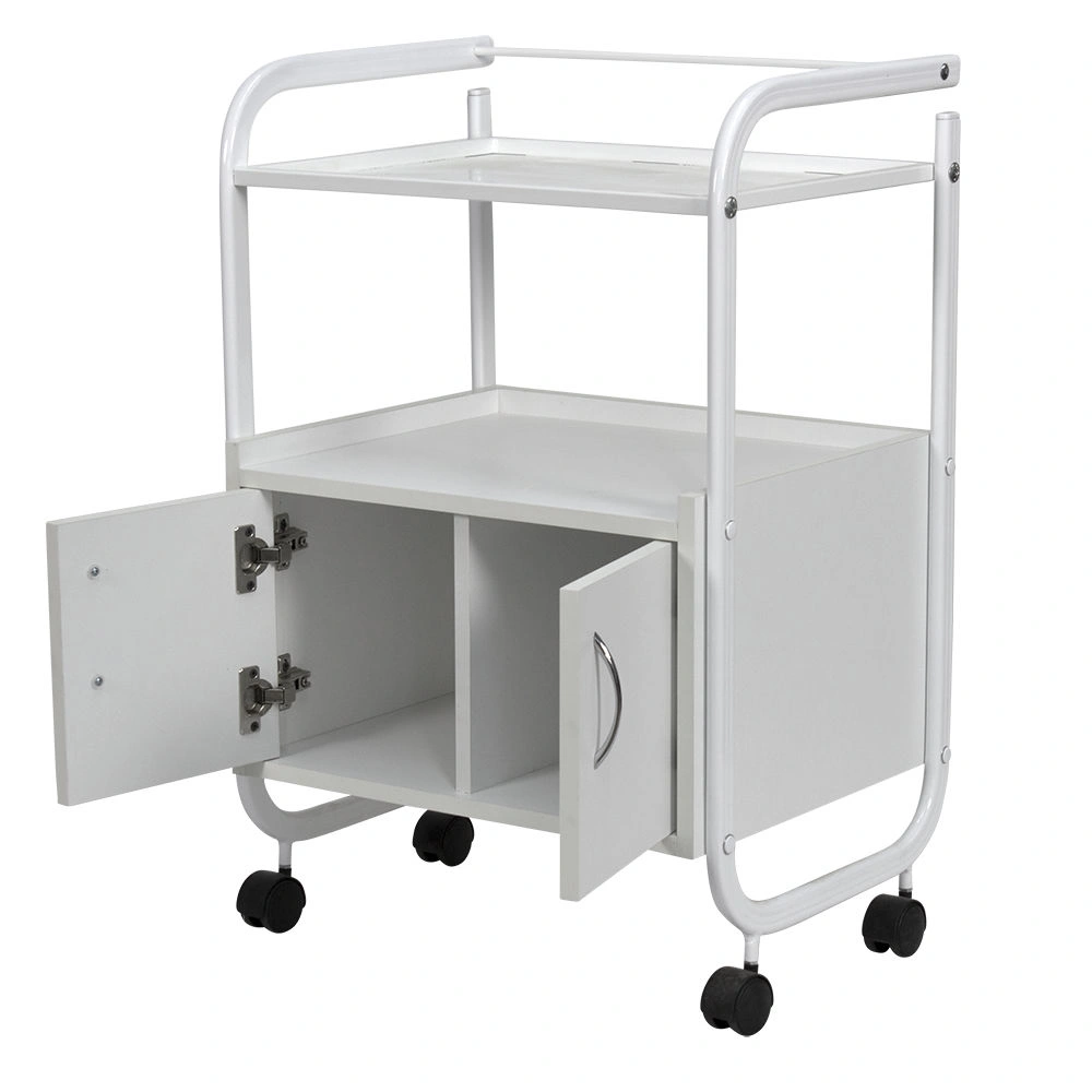 Комплектация: каркас, верхняя полочка, тумба, закрывающаяся дверками, вращающиеся колеса.