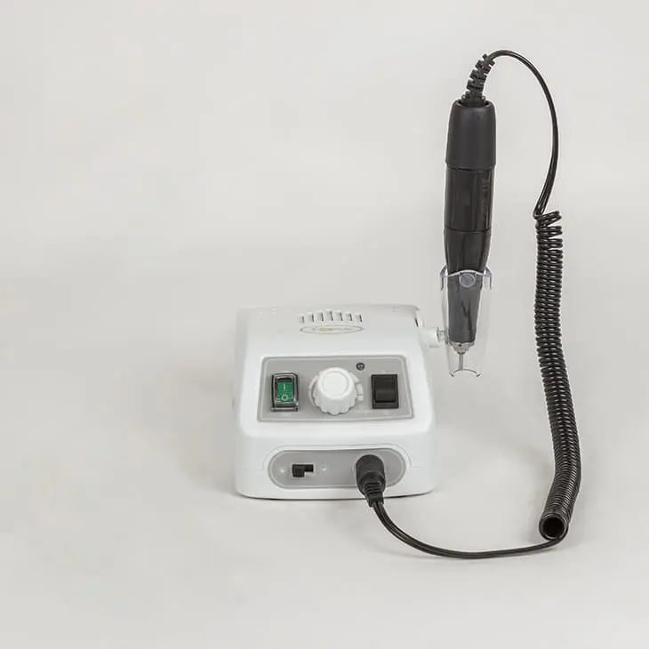 Комплектация: блок питания, держатель для наконечника, рукоять с микродвигателем, электрический шнур, инструкция, сумка, ножная педаль.