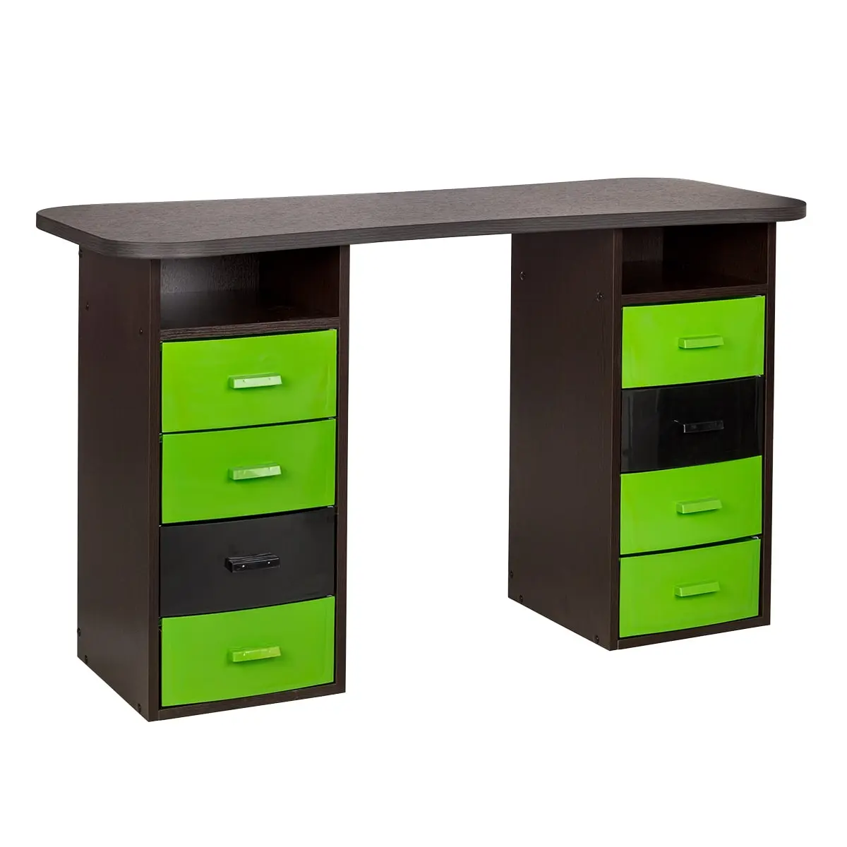 Комплектация: столешница, 2 тумбы, 8 ящиков, 2 полки