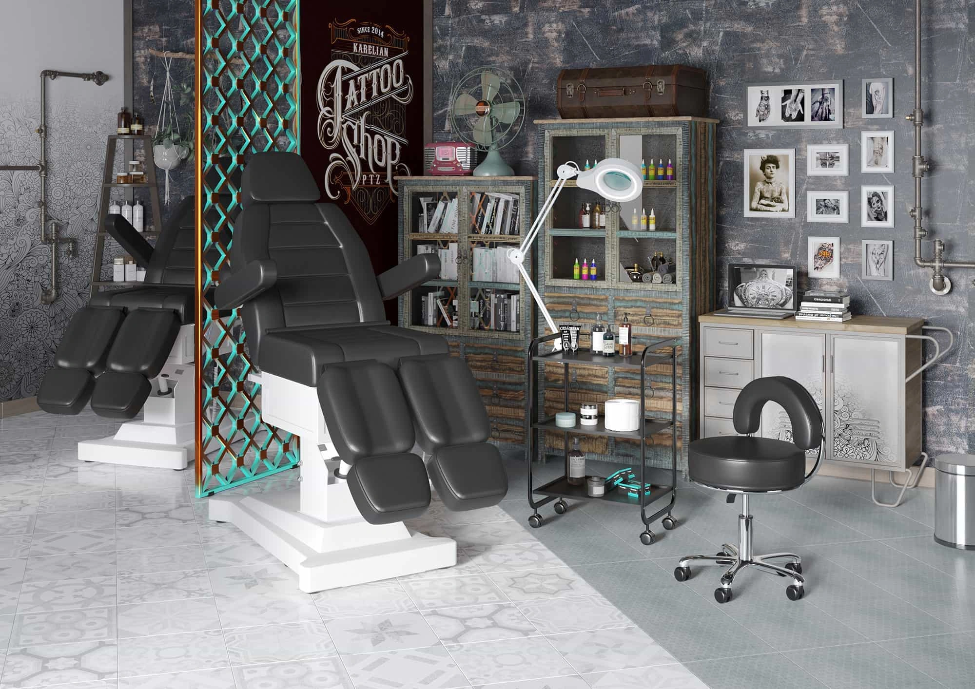 Профессиональное кресло для тату салона СИРИУС-07, гидравлика обеспечит клиентам все удобства на время проведения процедур, станет надёжным помощником мастера, не мешая любым его манипуляциям. Оборудование для тату салона изготовлено с учётом требований специалистов и отвечает современным тенденциям в дизайне.