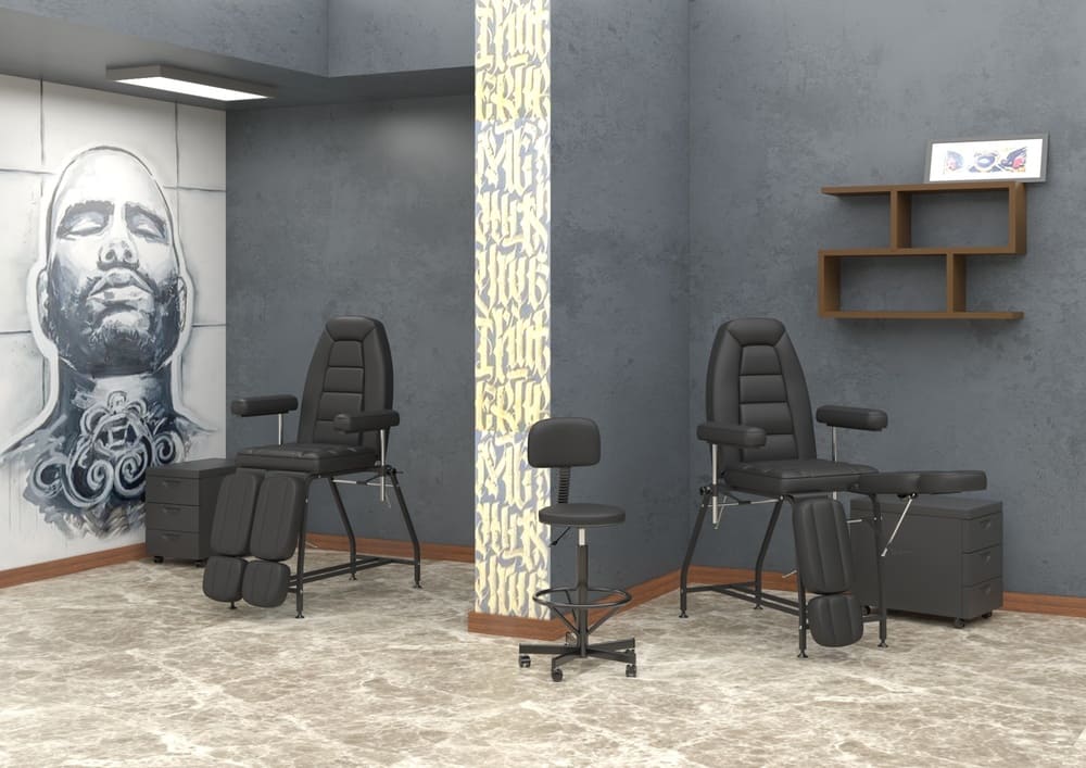 От того на сколько комфортным и практичным будет оборудование зависит качество предоставляемых услуг. Если мастер не будет переутомляться в течение рабочего дня, он будет эффективней выполнять свою работу. Предотвратит усталость и боли в спине после каждого сеанса нанесения татуировки стул мастера тату салона АСТЕК высокий (с опорой для ног и спинкой).