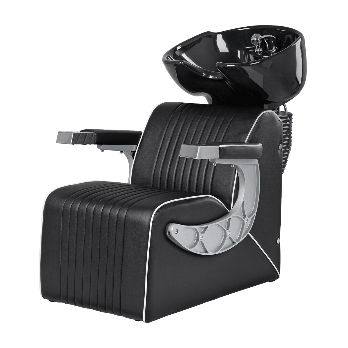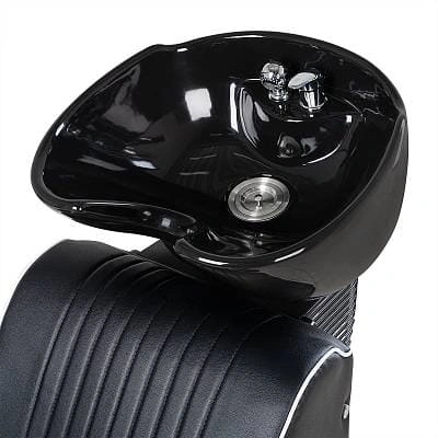Мойка для барбершопа Челленджер CN отличается стильным дизайном. Оригинальная форма кресла, черная керамическая раковина, обивка из экокожи с рифлением – все это смотрится солидно и стильно. Конструкция мойки максимально продумана для удобства клиента и мастера. Поролоновый наполнитель долго держит форму и не теряет свойств на протяжении всего срока эксплуатации. Экокожа устойчива к воздействию влаги, поэтому ее можно очищать от загрязнений обычной влажной тряпкой.