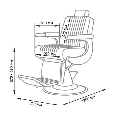 В комфортабельном кресле учтены все нюансы, которые помогут клиенту расслабиться, а мастеру комфортно работать. Благодаря удобному подголовнику клиент сможет откинуть голову во время бритья опасной бритвой. Для рук есть широкие подлокотники. Чтобы ноги клиента не находились в напряженном состоянии в кресле предусмотрена широкая подножка.