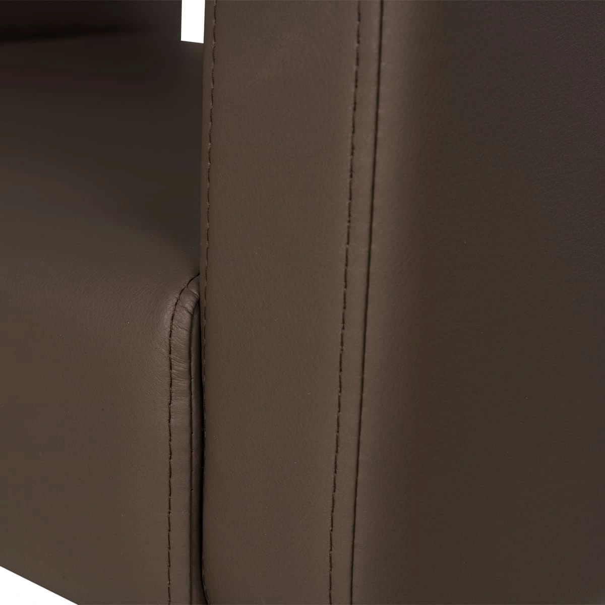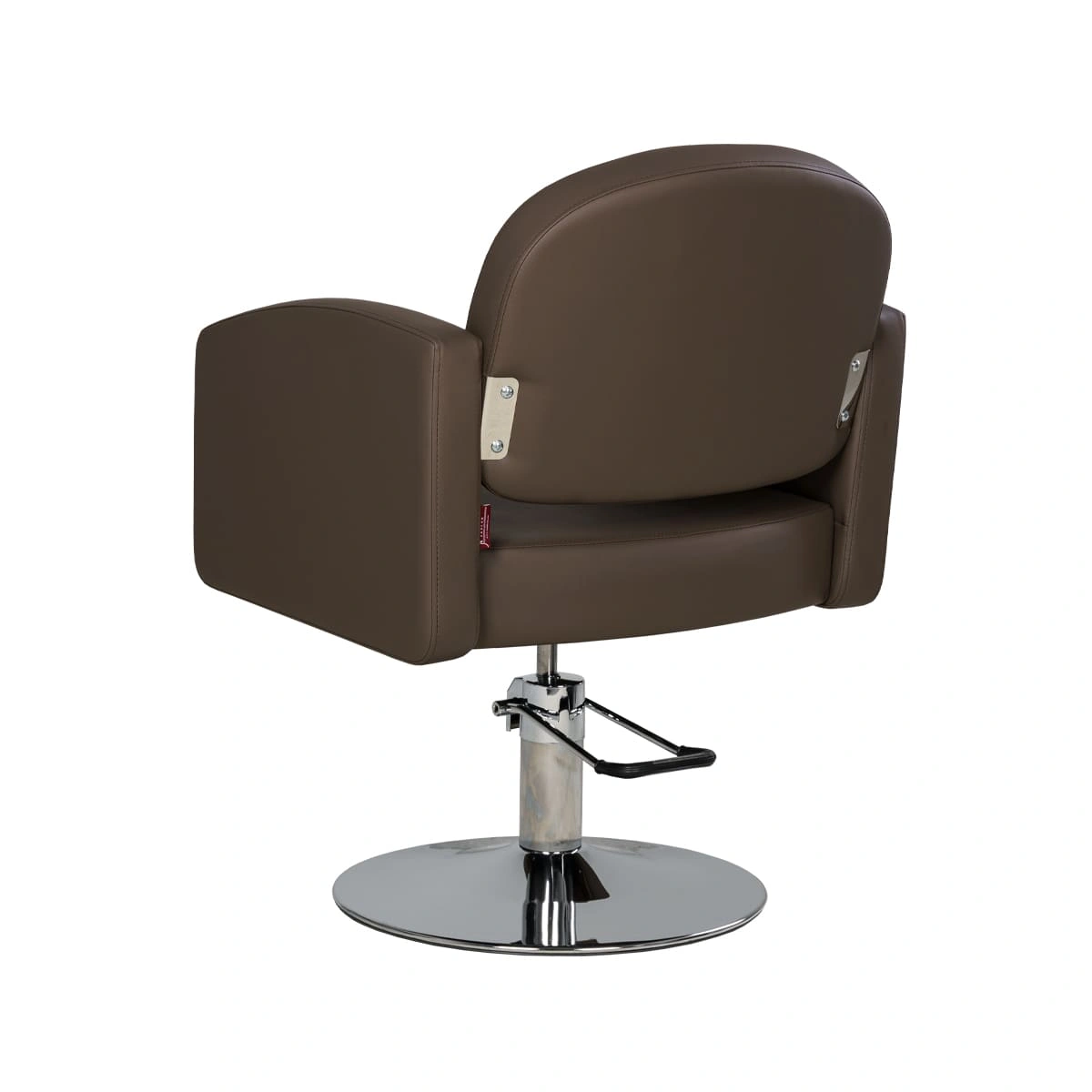 Удобное сидение с мягкой спинкой в сочетании с подлокотниками помогут обеспечить комфорт каждому клиенту. В качестве наполнителя применён плотный поролон, который не образует вмятин в течение длительного срока эксплуатации. Для обшивки использована прочная экокожа, устойчивая к разрывам, растягиванию и протиранию. Уход за поверхностью необычайно прост, потому что материал не впитывает влагу и грязь. Пыль с такой мебели можно удалить сухой текстильной салфеткой, а пятна от косметических продуктов стираются специальными моющими составами для кожи без хлора.
