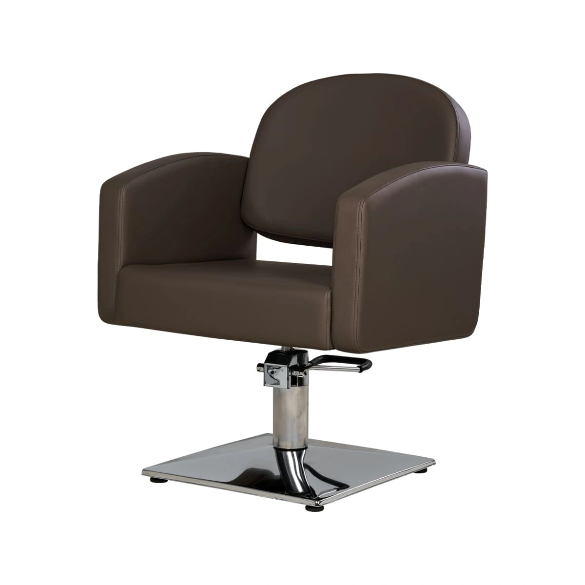 Каркас парикмахерского оборудования изготовлен из крепкого металла, что обеспечит долговечность и устойчивость кресла. Данная модель в базовом укомплектовании оснащена хромированным основанием в форме квадрата.