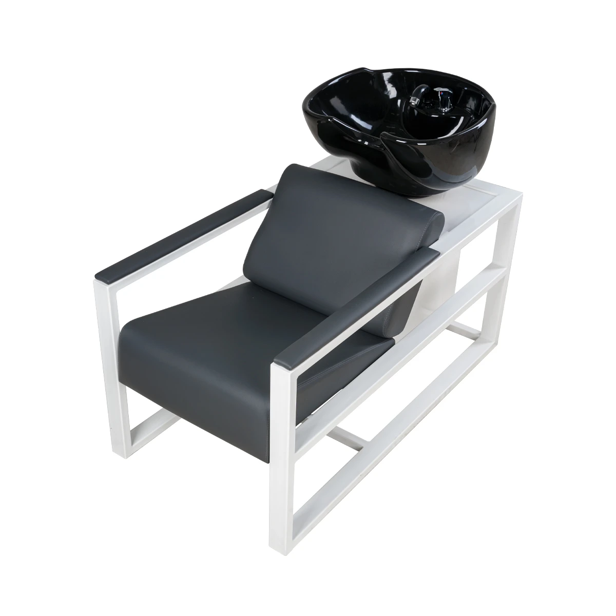 Парикмахерская мойка Дуглас на белом каркасе – это профессиональное оборудование с отличными функциональными возможностями. Она разработана для бьюти салонов и парикмахерских высокого уровня. Данная модель оснащена красивой глубокой раковиной из черной или белой керамики на выбор, которая идеально подходит для мытья длинных и средних волос. В комплектации также предусмотрен набор сантехники: смеситель, удобный душ, слив. Каркас мойки изготовлен из металла со сверхпрочным порошковым покрытием белого цвета.