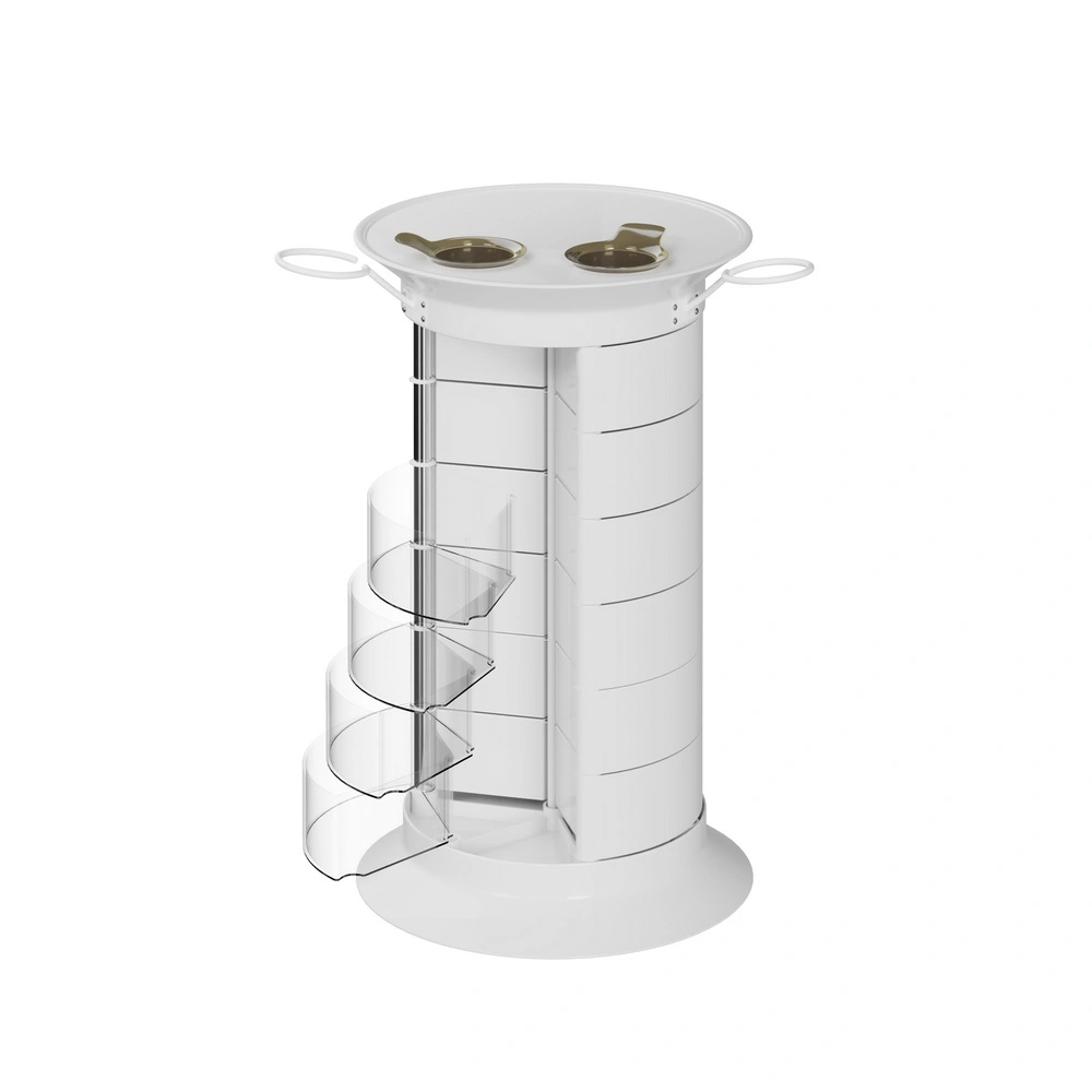 Парикмахерская тележка GiroCo Ofelia Plus имеет один вертикальный ряд прозрачных ящиков.