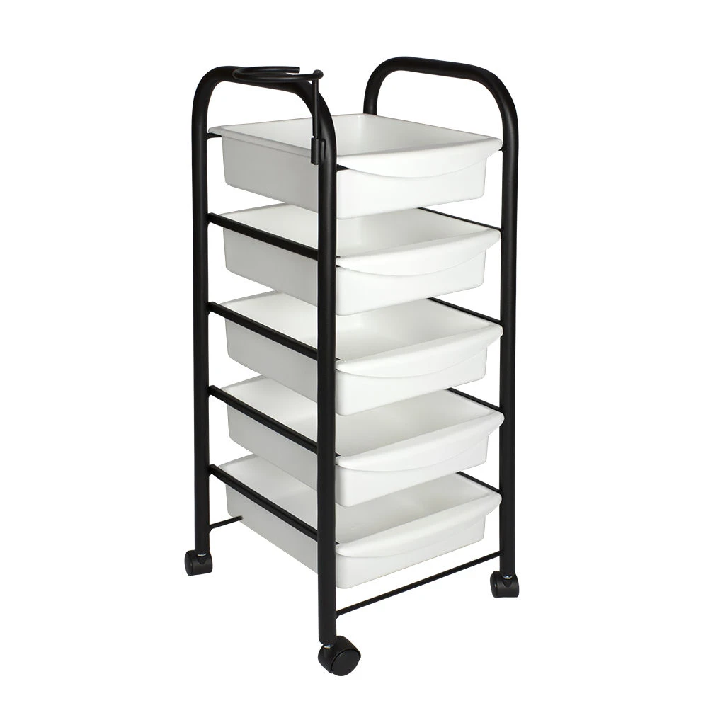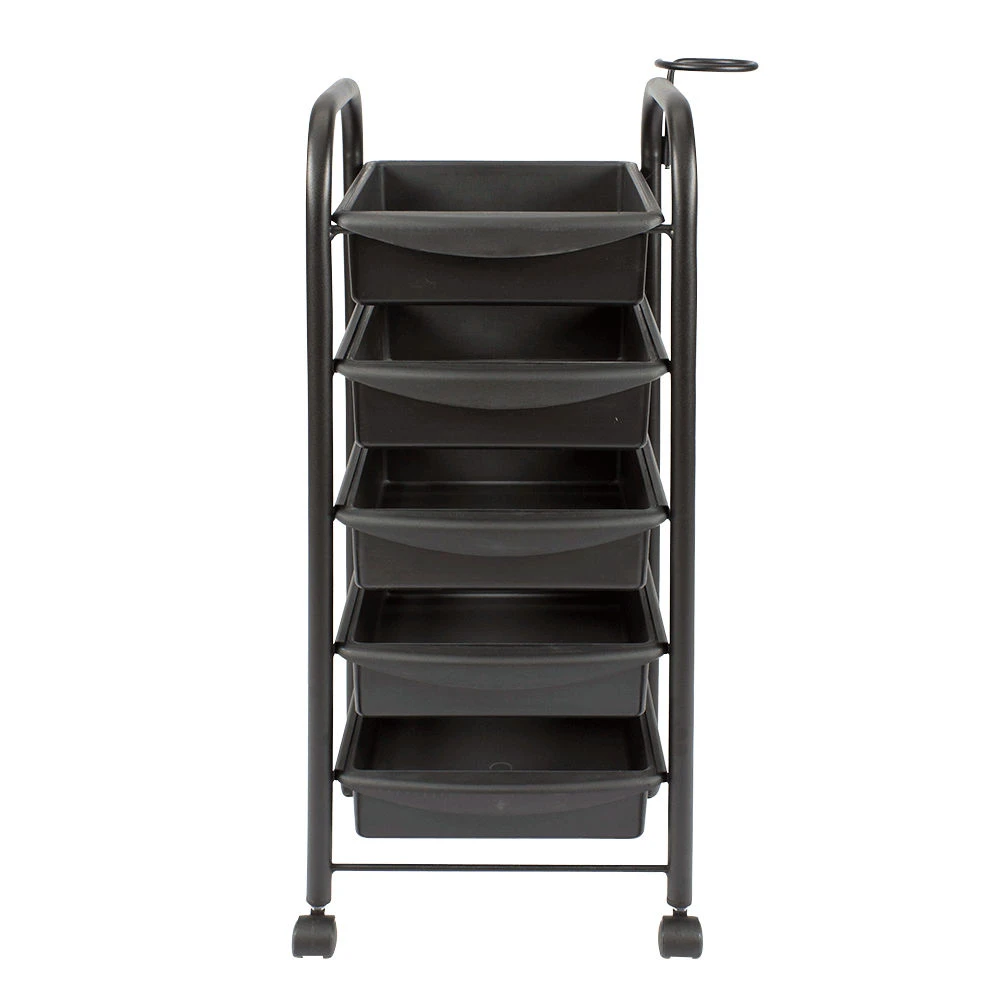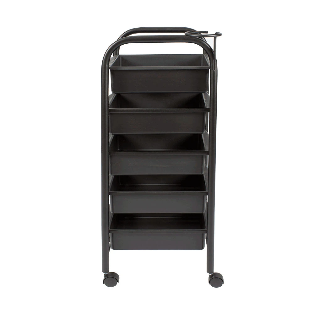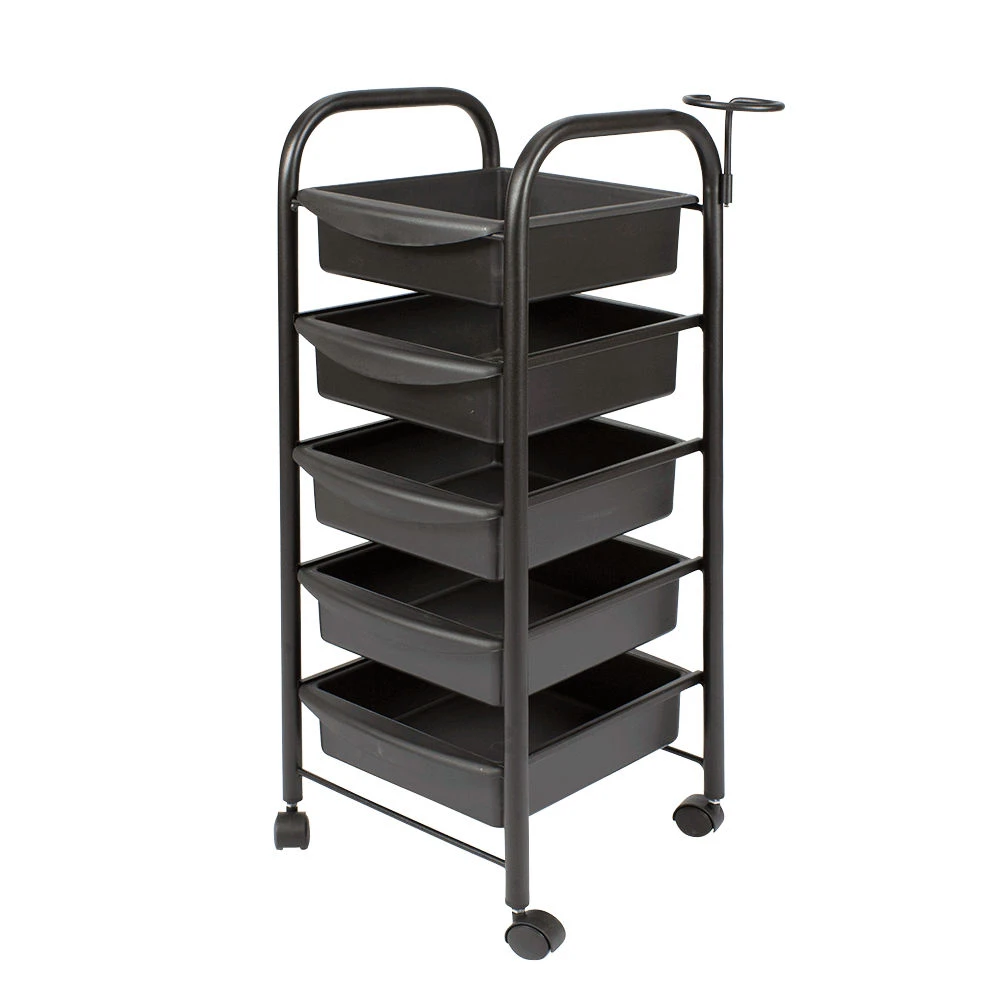 Тележка парикмахерская М-01 (черный цвет) – это профессиональное оборудование по доступной цене. С ее помощью можно сделать рабочее место мастера парикмахера более практичным, что в свою очередь положительно влияет на эффективность его работы. Такая тележка отлично подходит для хранения рабочих инструментов, приборов и расходных материалов. В комплектацию входит пять вместительных выдвижных ящиков из прочного пластика черного цвета. Этот материал легко чистится и не требует особого ухода.