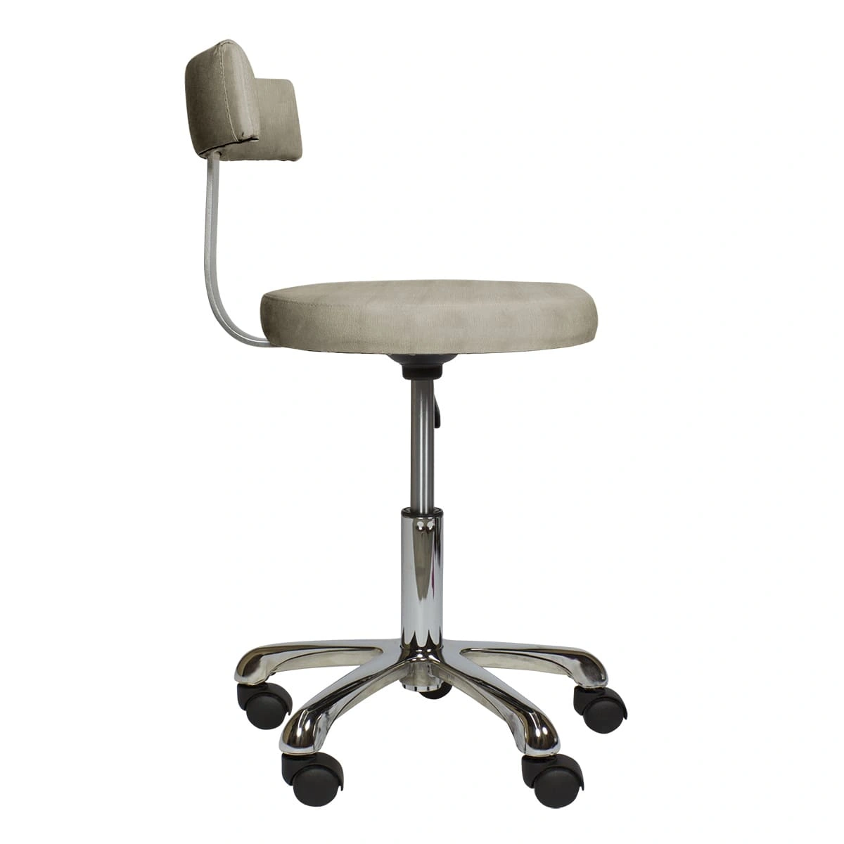 Удобный стул мастера МД-9017 с высокой посадкой от компании МЭДИСОН. Он отлично подойдет парикмахерам, визажистам, мастерам по маникюру и педикюру, а также другим специалистам. Высота уровня сиденья регулируется с помощью пневматики от 445 до 575 мм. Данная модель комплектуется эргономичным сиденьем круглой формы и высокой анатомической спинкой, которые соединены между собой надежным каркасом из полированного металла. Для производства мягких элементов применяются такие высококачественные материалы: