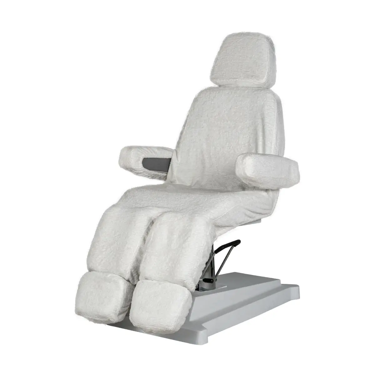 Чехол на педикюрное кресло не испортит гармонии в дизайне помещения, так как белый является универсальным цветом и подходит под любую цветовую гамму интерьера. Среди особенностей чехла можно выделить: