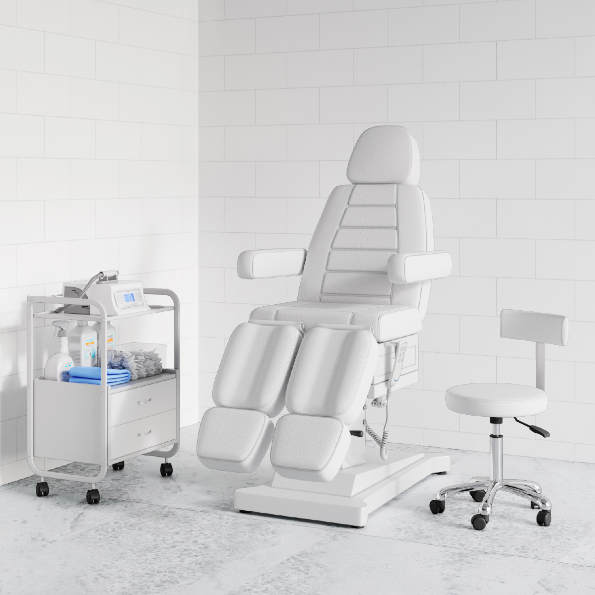 Кресло имеет усиленный каркас из металла с антикоррозийным покрытием. Благодаря широкому основанию оборудование сохраняет свою устойчивость в любом положении. Для удобной посадки в кресло подлокотники поднимаются, а при необходимости их можно снять. Купить педикюрное кресло Сириус-10 (Элегия-3), 3 мотора, со склада из наличия можно в таких цветах: белом, бежевом, серебристом, черном. Другие цвета под заказ.